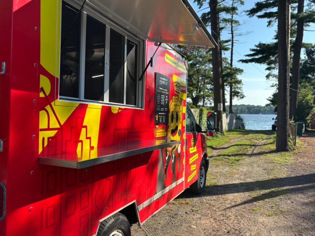 We are  known by our bright red waffle trucks. They are designed to spark joy. But behind the wrap, there is a vehicle and kitchen deeply thought of to maximize efficiency. Our trucks are nice and small making them easy to drive, able to operate on small driveways at grad parties, but efficient enough to serve 120 students per hour at a big college. Pure food truck symphony.